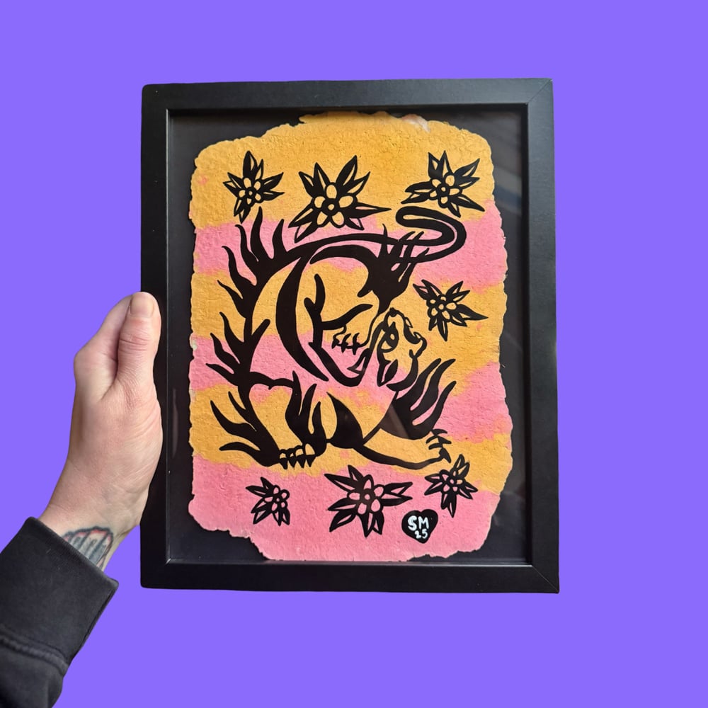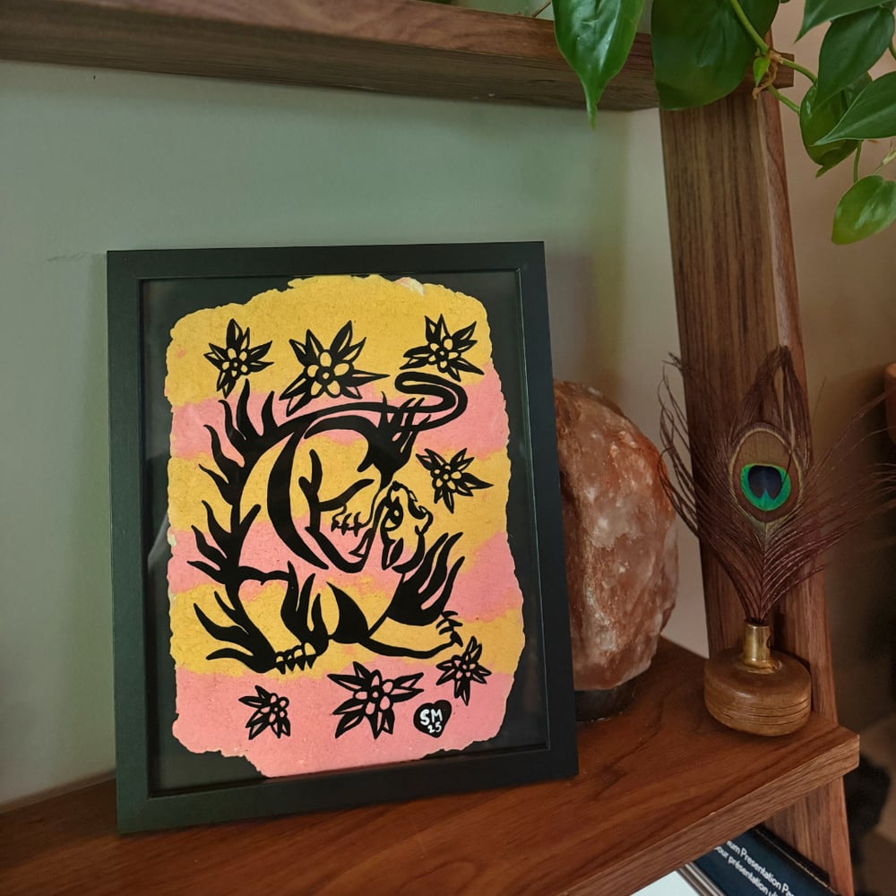 Flaming Panther Recycled Paper Framed Original