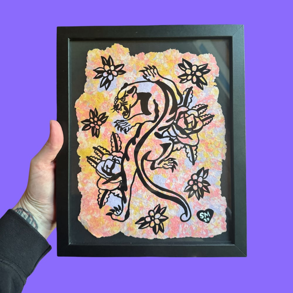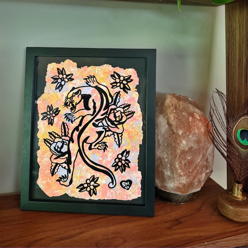 One-of-a-kind signed painting on recycled paper that I make and paint by hand. This is an original painting that will never be replicated or made into prints.