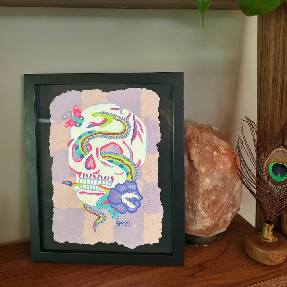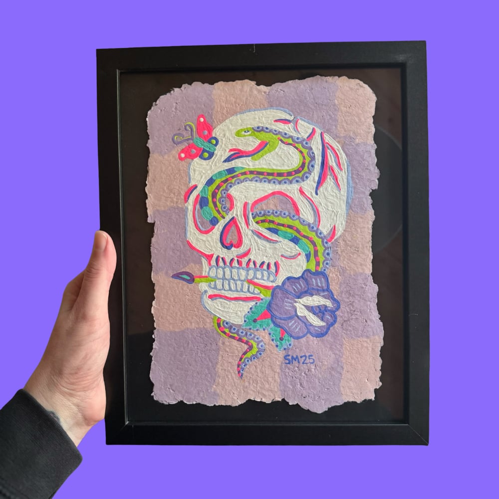 One-of-a-kind signed painting on recycled paper that I make and paint by hand. This is an original painting that will never be replicated or made into prints.